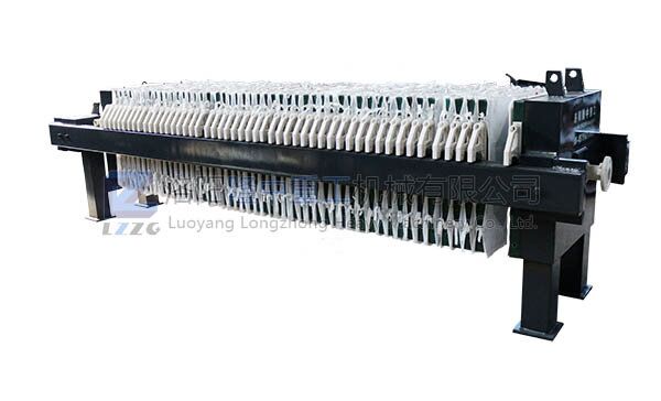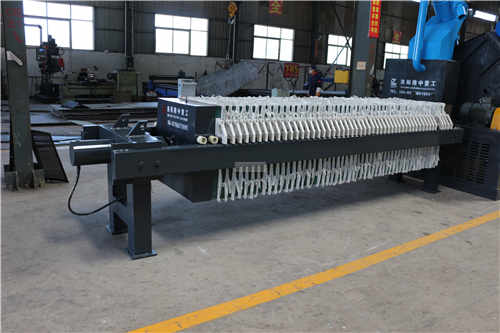 板框壓濾機(jī)是通過板框的擠壓,使污泥內(nèi)的水通過濾布排出,達(dá)到脫水目的。主要由凹人式濾板、框架、自動(dòng)-氣動(dòng)閉合系統(tǒng)測(cè)板懸掛系統(tǒng)